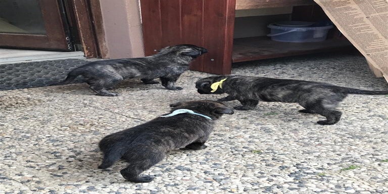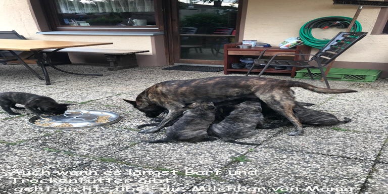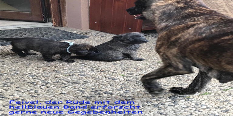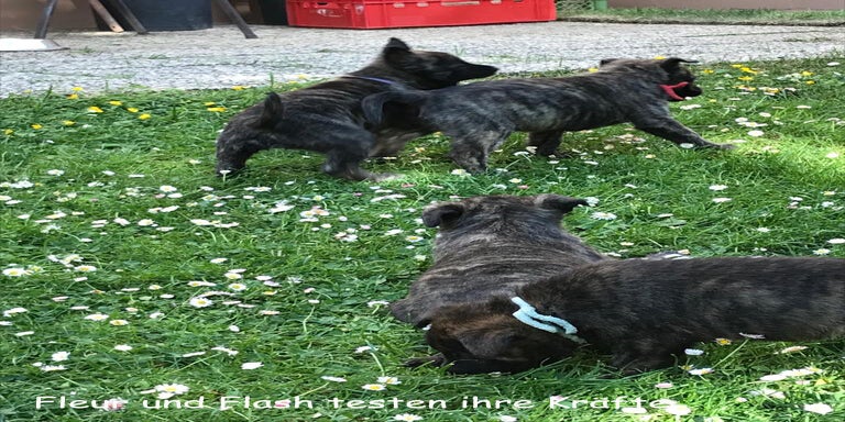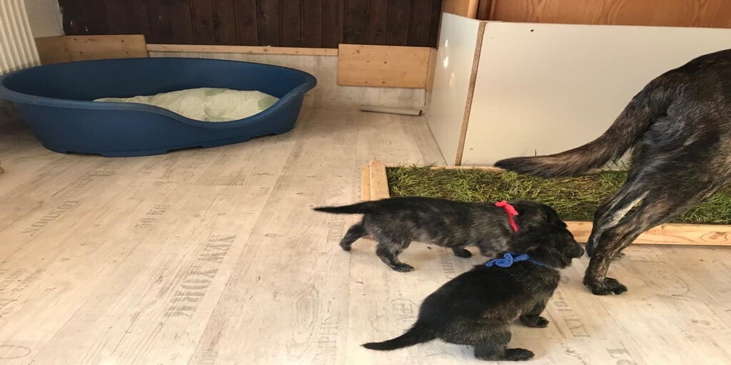 Die Entwicklung der Welpen ist gigantisch! Sie fressen nicht nur Barf, sondern auch Trockenfutter, aber das ist nicht so beliebt! Die Terrasse und der Garten haben nun auch Ihr Interesse geweckt...