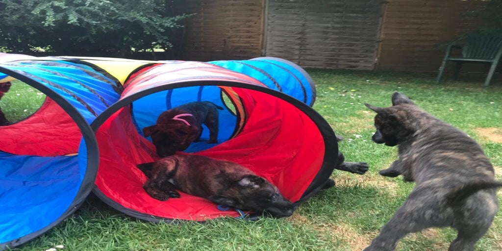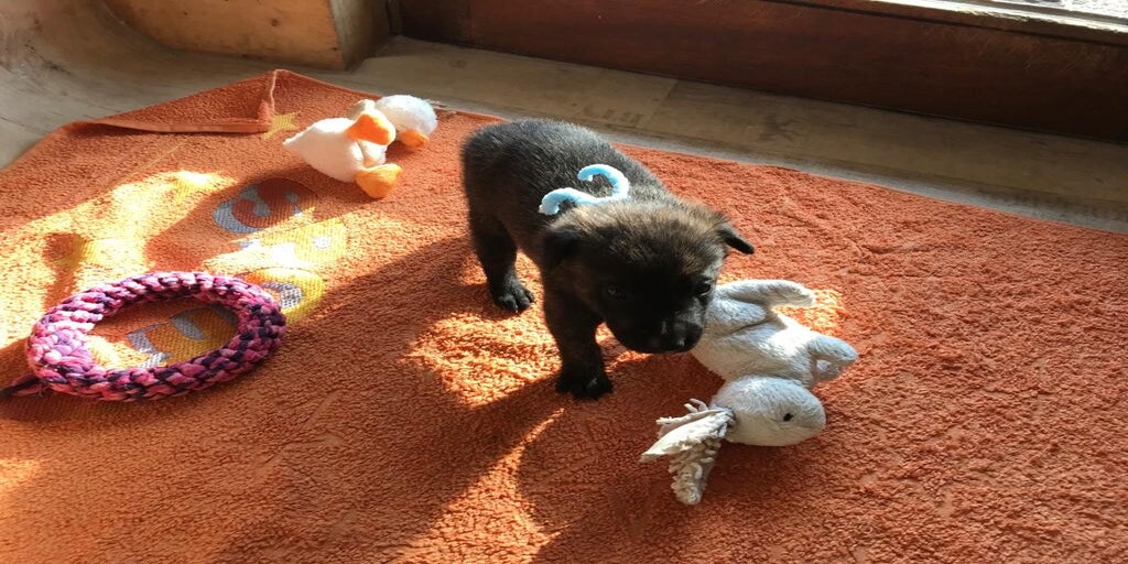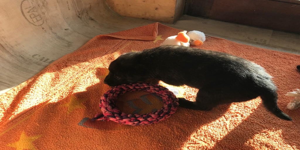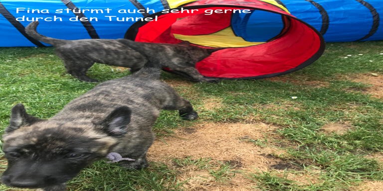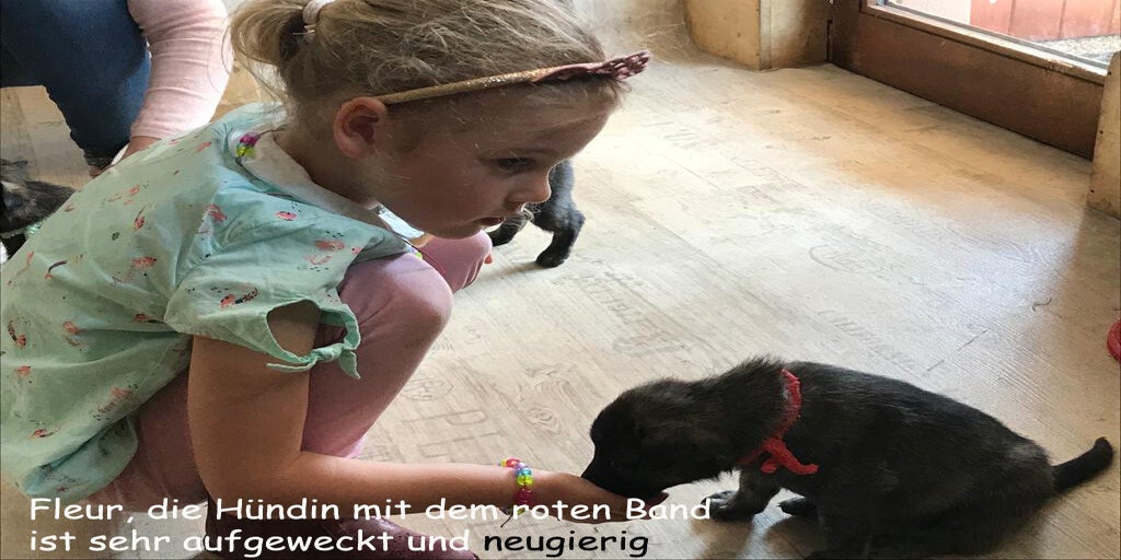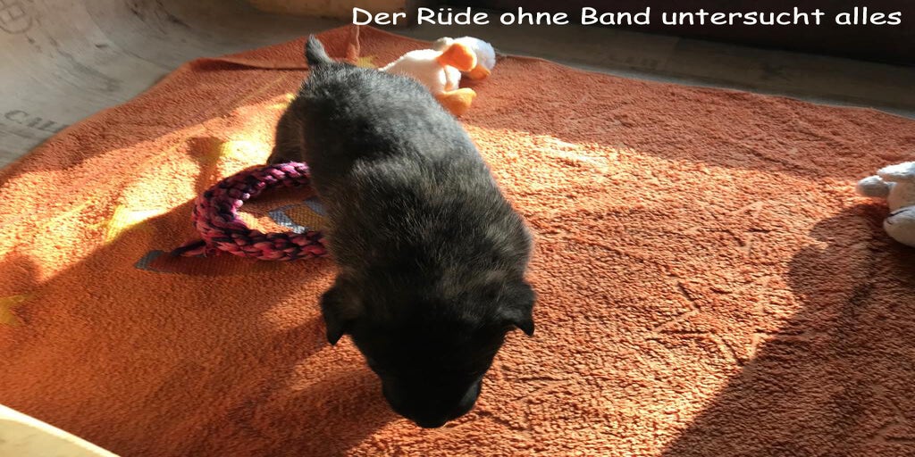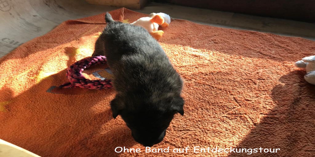 Jetzt sind die Kleinen schon richtig fit auf ihren Beinen° Sie entdecken das Welpenzimmer mit all seinen Spielsachen sowie der Wippe und dem Laufsteg! Auch die Zähnchen sind im Anmarsch...