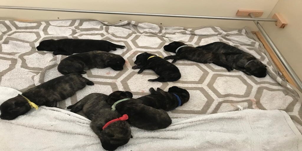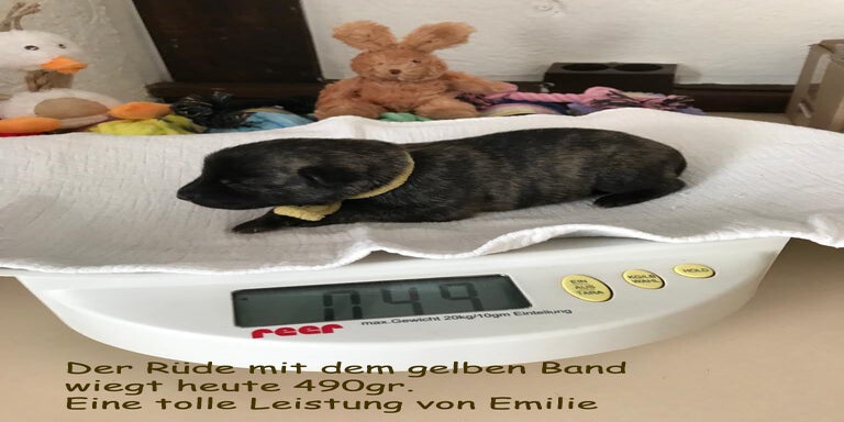 Am Donnerstag, 07. April 2022 hat Emilie 9 Welpen zur Welt gebracht, 5 Rüden und 4 Hündinnen.
